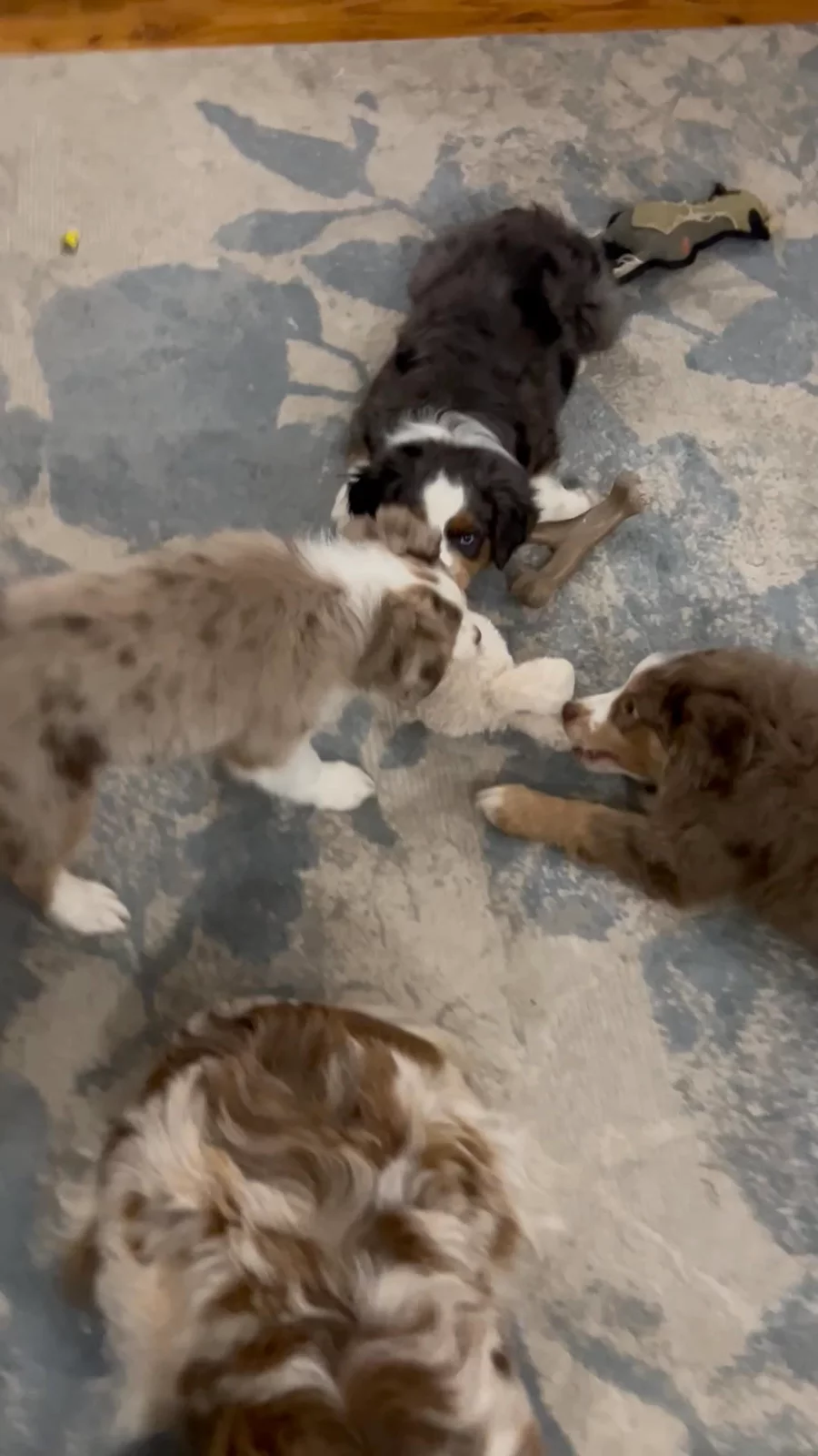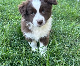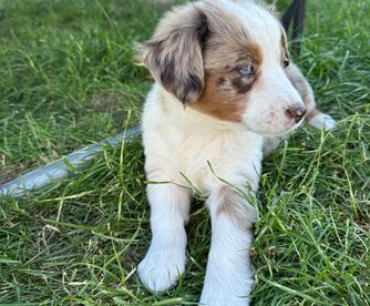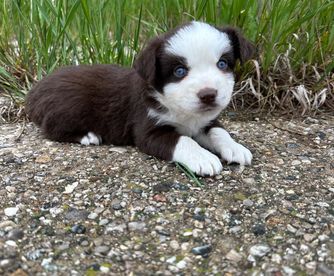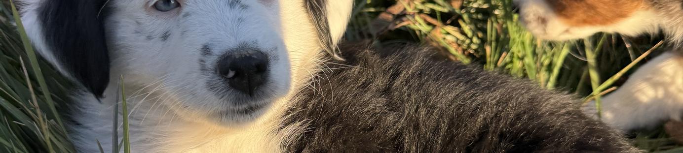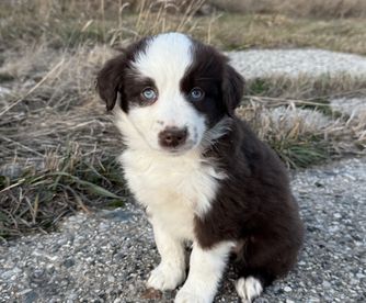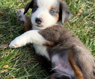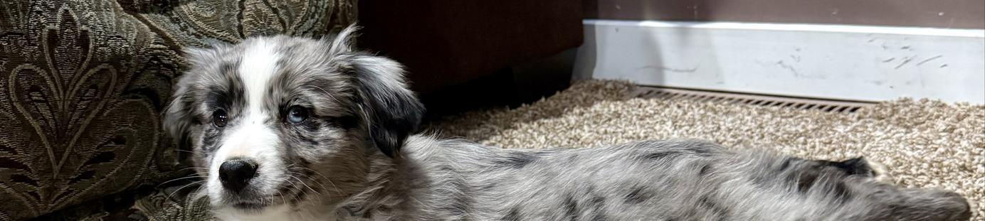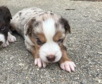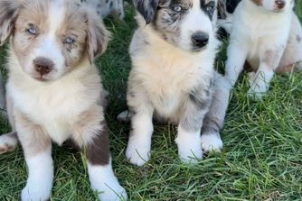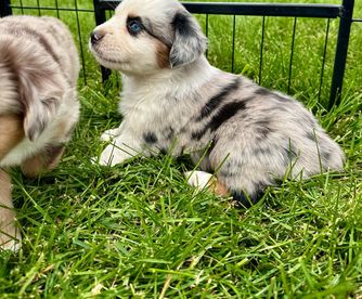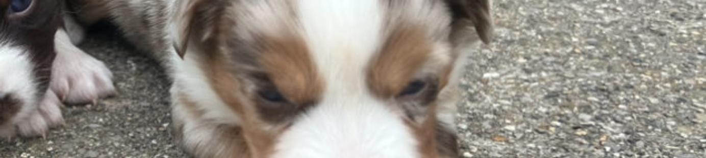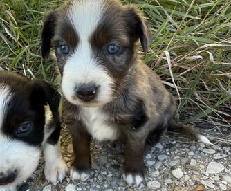Our puppies include red & white, black & white, blue merle, black tri, red tri, and red merle. Colors will vary depending on the parent dogs.