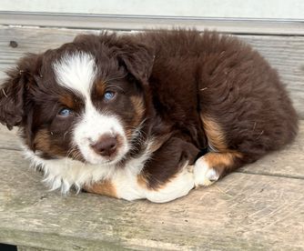 I'm Laurie and Beth V., the breeder behind Highland Hills Mini Aussies located in Marion, MI. We are Mother and Daughter breeders who enjoy raising Mini Aussies. Our focus is on raising puppies with clear generics, with calm dispositions & are loyal companions. We’re confident that our puppies will become perfect family members & add just as much joy to your life as they have ours!