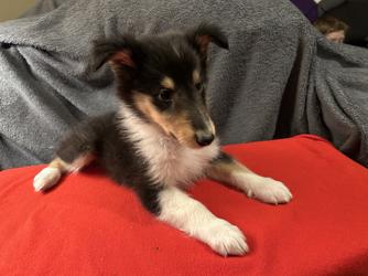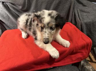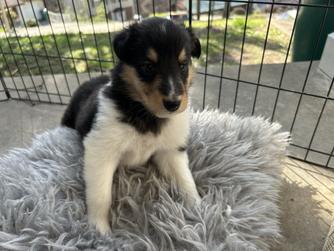 Our puppies include black white and tan, blue merle and white, sable and white, and sable merle. Colors will vary depending on the parent dogs.