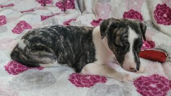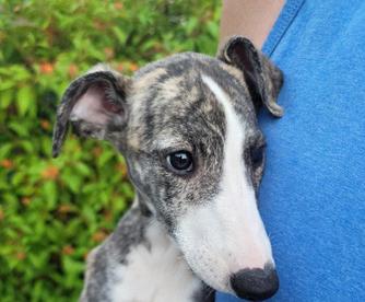 I'm Doug and Elizabeth D., the breeder behind Highlander Whippets located in Port Richey, FL. We raise everyone in our home where they get plenty of attention, socialization and started on house training. We use artificial grass pee pads right away to start the process. We also crate train our dogs. The puppies will have their immunizations, microchip, and a Certificate of Health from a Veterinarian. We will also provide toy(s), blanket that have the scent of the litter on them to help them adjust to their new home. You will also receive a lead, a few days' worth of food, training information, and information on spaying and neutering. We suggest waiting until they are adults before having it done. Having it done at an earlier age can lead to future health issues.