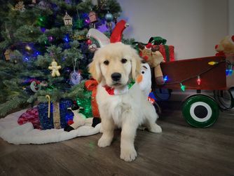 I'm Caroline J., the breeder behind Highlander's Goldens located in Nevada. We understand the responsibility of purposefully breeding in order to do better for the breed and the families that love them! It’s important to us that we continue to improve our program and share our knowledge with our buyer families. We want to better the breed through thorough health testing and selective breeding decisions.