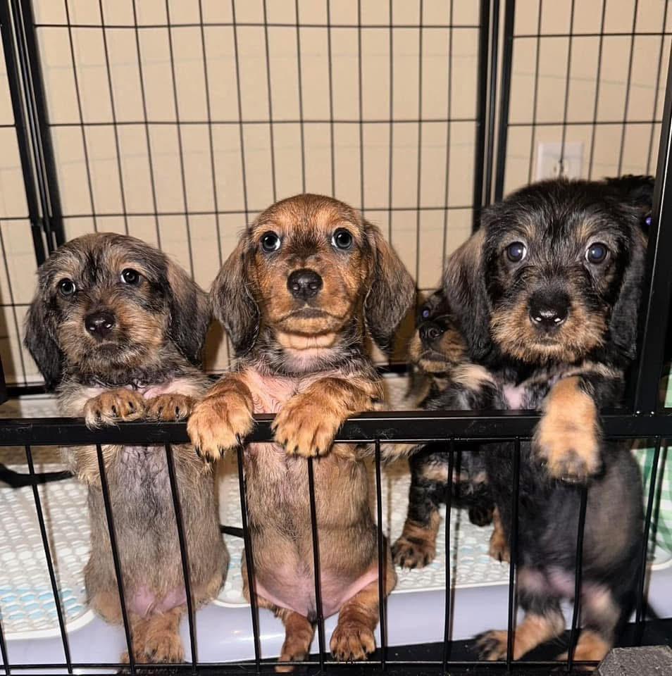 Our puppies have wirehaired coats. Coat types may vary depending on the parent dogs.