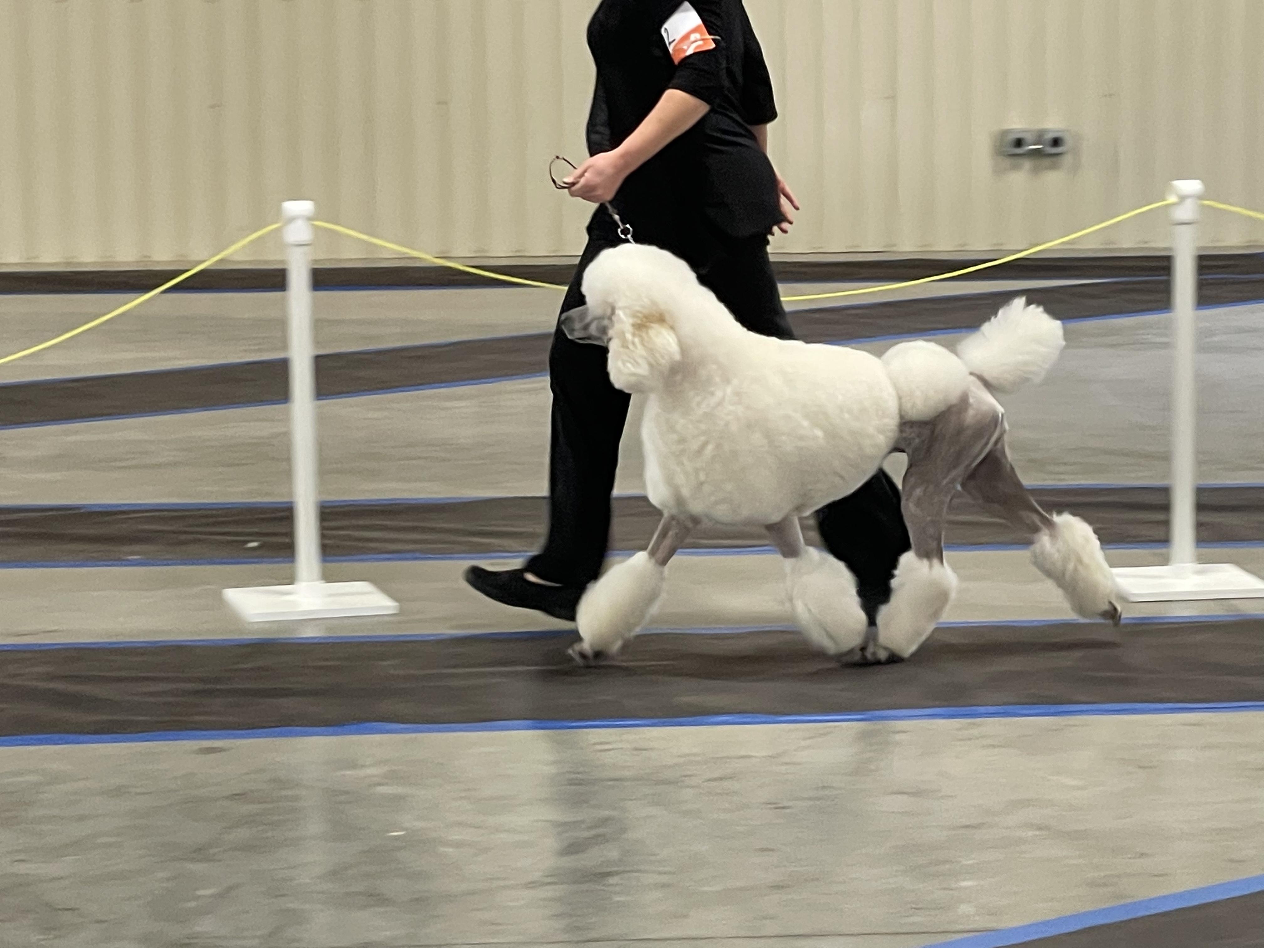 Once we started training dogs we trained some poodles. I found they were so incredibly family-friendly with all-around good temperaments. Basic training was accomplished in a week and they were so easy to work with that we decided to breed and train Poodles. From grooming training to social skills to obedience it’s important to have a well-rounded pup. Beyond that I stepped into the show world and we are still on that journey.