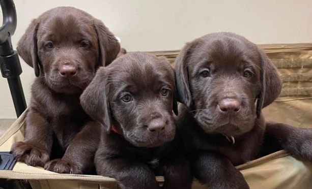 Our puppies include black, chocolate, and yellow. Colors will vary depending on the parent dogs.