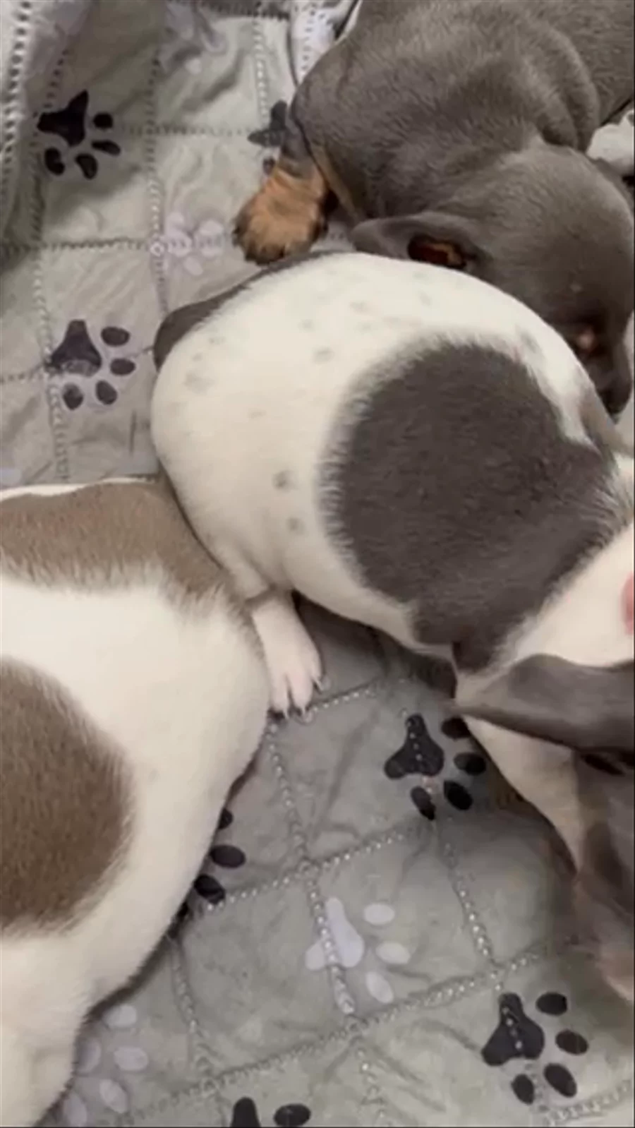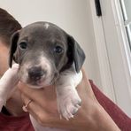 Our puppies include piebald, fawn (isabella), gray (blue) and tan, fawn (isabella) and cream, chocolate and tan, blue and tan, blue and cream, black and tan, and dapple. Colors will vary depending on the parent dogs.