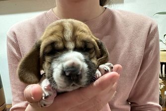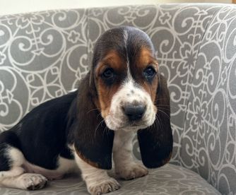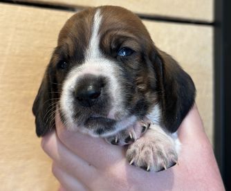 Our Basset Hound puppies include red and white, mahogany and white, black brown and white, and black and brown. Colors will vary depending on the parent dogs.