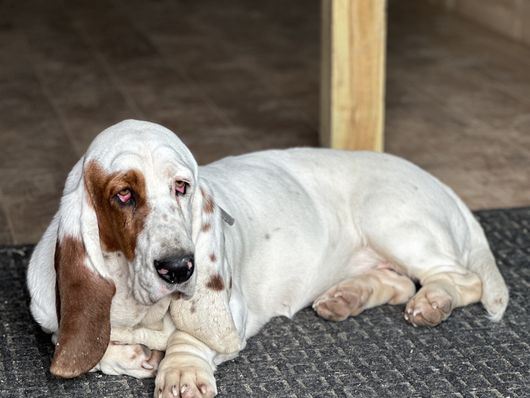 Wally is a male Basset Hound. Carefully selected as a great representative of his breed, Jennifer decided to make him part of their program. Jennifer has passed Good Dog’s screening process, which involved a review of their breeding practices, environment, and the mental and physical health of their dogs.