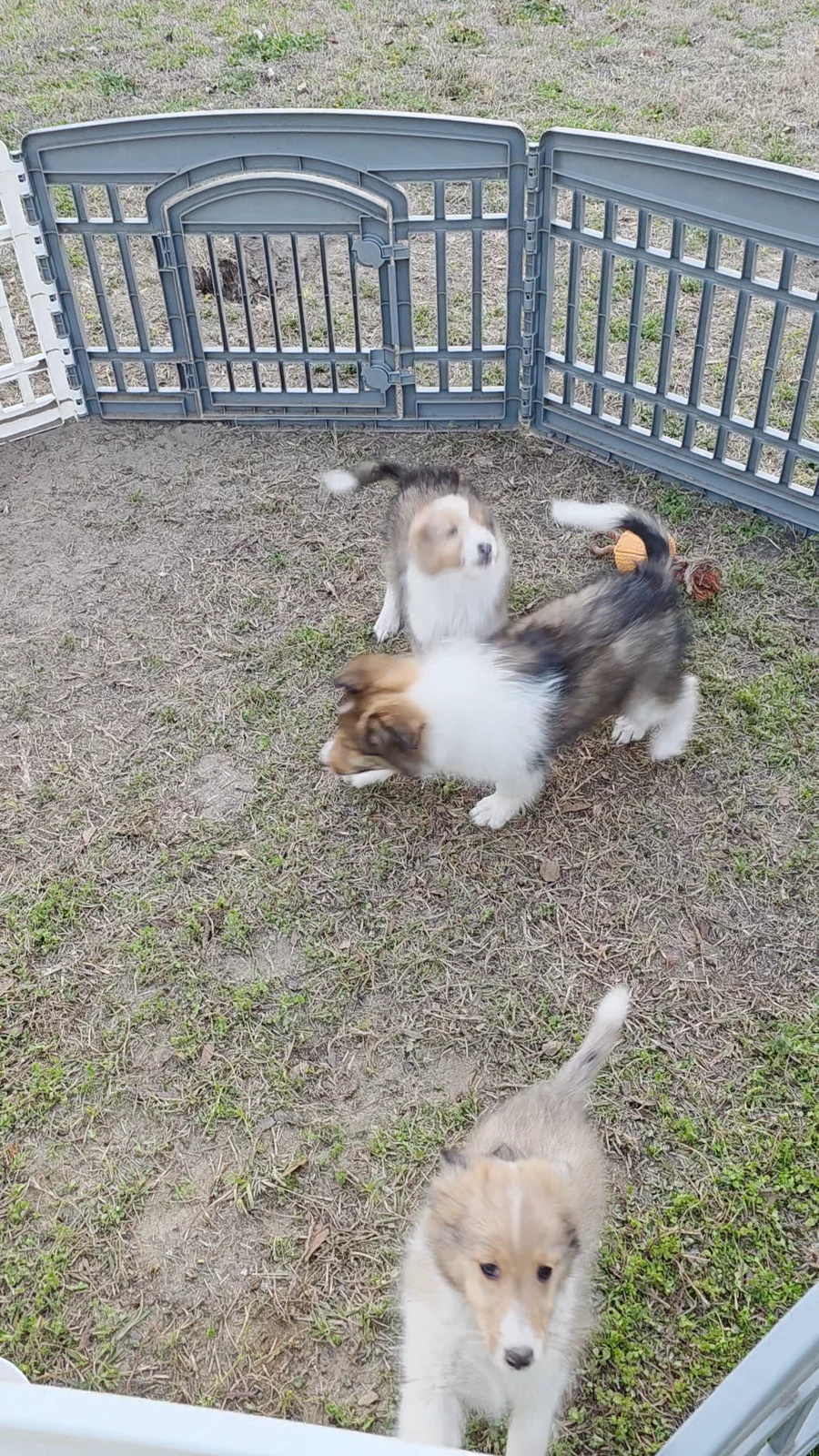 It's raining here today so puppies are staying inside today But this is another little clip from Monday.