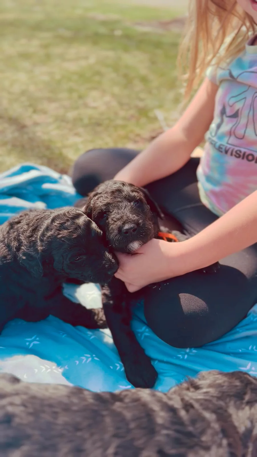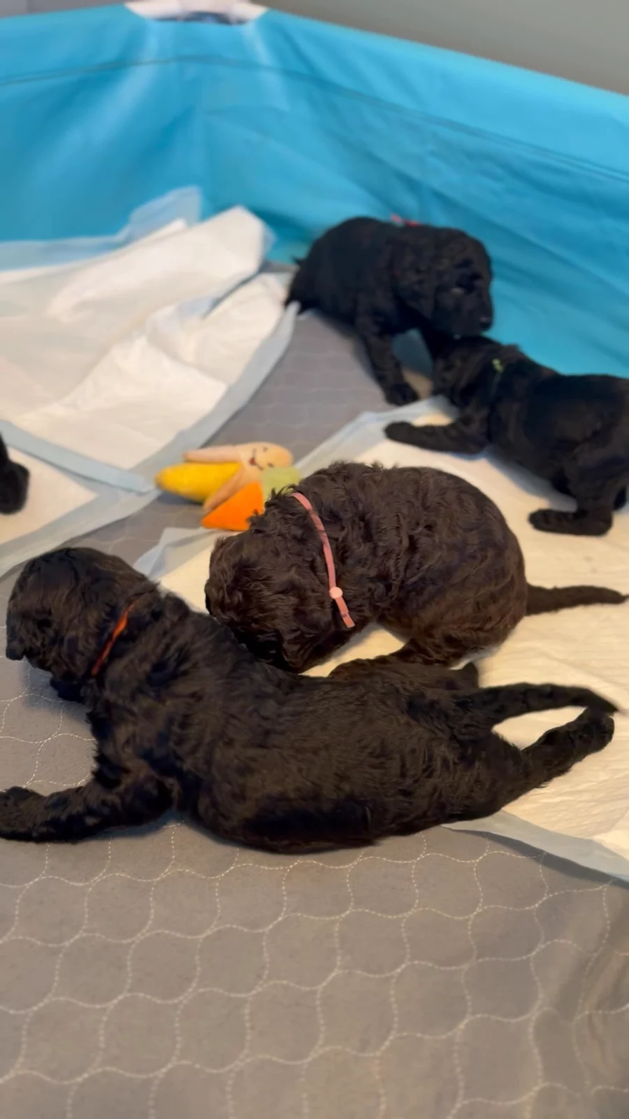 Our puppies are officially 6 weeks old, and this is such a fun and busy stage! Their personalities are really starting to shine, and we’re seeing a great mix of playful energy, curiosity, and sweet snuggly moments. They’re becoming more confident each day- exploring new spaces, interacting more with people, and enjoying lots of playtime with their littermates. They’re doing great with eating and transitioning, and we’re continuing to work on early socialization to help set them up for success in their future homes. You’ll notice more eye contact, tail wags, and those adorable little bursts of personality coming through. We’re headed to the vet on Monday for their full wellness check and first round of vaccinations. This is an important milestone, and we’re excited to make sure everyone is healthy, growing well, and right on track. It’s hard to believe how quickly these weeks are going- such a sweet, memorable stage for this litter!