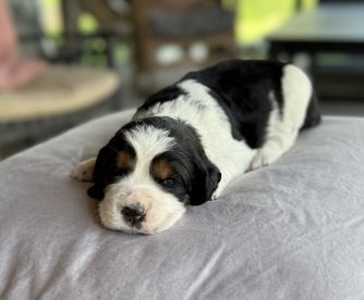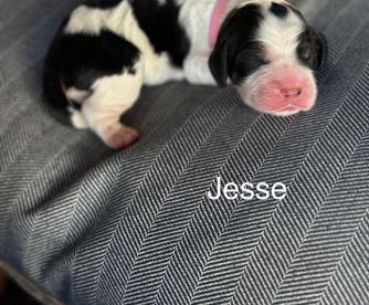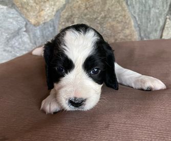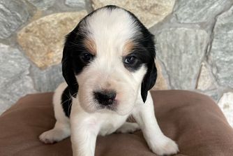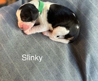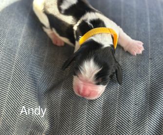 Our puppies include liver and white, liver white and tan, black white and tan, and black and white. Colors will vary depending on the parent dogs.