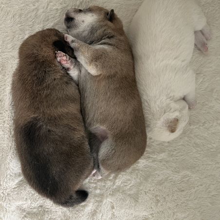 Our puppies include red, black and tan, and sesame. Colors will vary depending on the parent dogs.