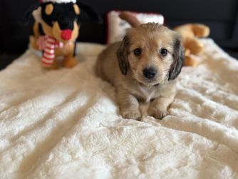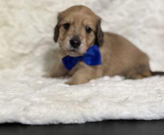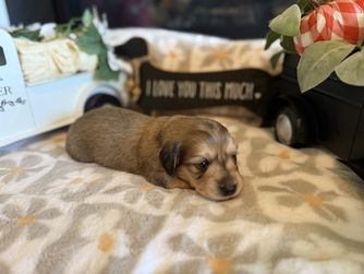 “Price depends on puppy. We breed AKC longhair dachshunds. Puppies are raised in home underfoot. They are dewormed on a 2 weeks schedule, declaws removed, 1st puppy vaccines and vet examined before going to their new homes!”