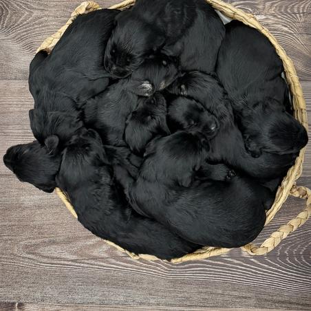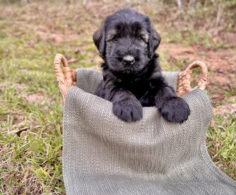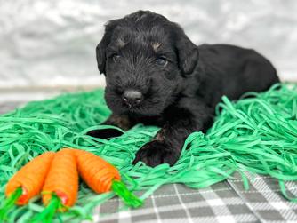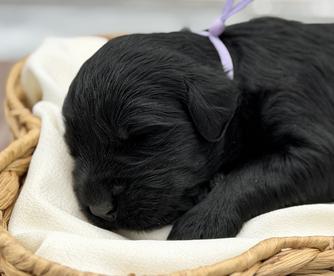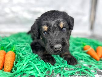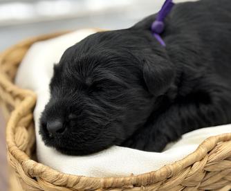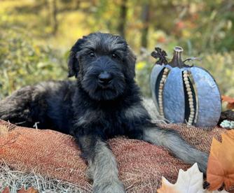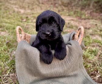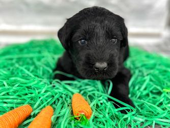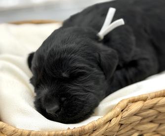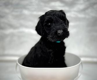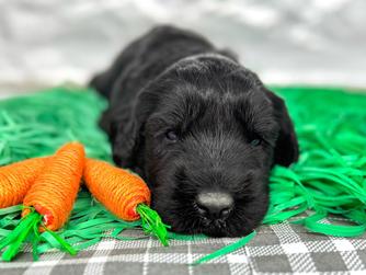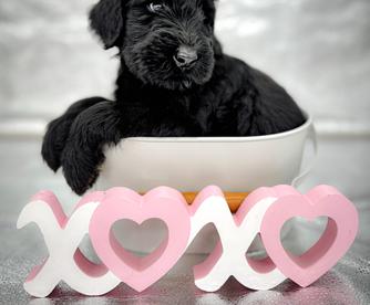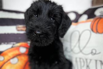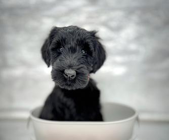 Our Giant Schnauzer puppies include black and tan, pepper and salt, and black. Miniature Schnauzer puppies include white, parti, black, and salt and pepper. Colors will vary depending on the parent dogs.