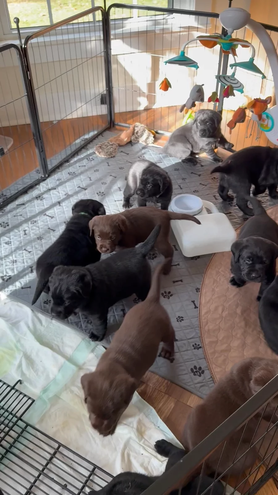 Our puppies include black, chocolate, and yellow. Colors will vary depending on the parent dogs.