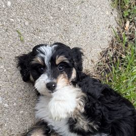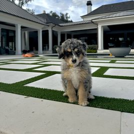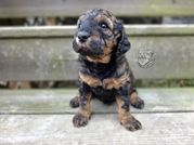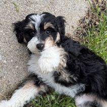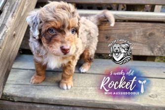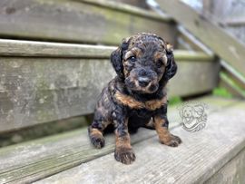 Our Goldendoodle puppies include chocolate, phantom, and merle. Poodle puppies include sable, brown, cafe au lait, and phantom. Aussiedoodle puppies include blue merle, red merle, black tri-color, and red tri-color. Colors will vary depending on the parent dogs.
