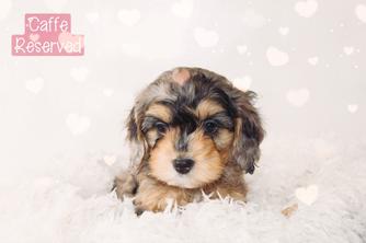 Our Cavapoo puppies are red. Cockapoo puppies include merle, golden, brown roan, buff and white, blue roan, blue roan and tan, and black and tan. Goldendoodle puppies include cream, red, merle, and parti. Poodle puppies include sable, apricot, black, cream, red, silver, parti, phantom, and brindle. Colors will vary depending on the parent dogs.