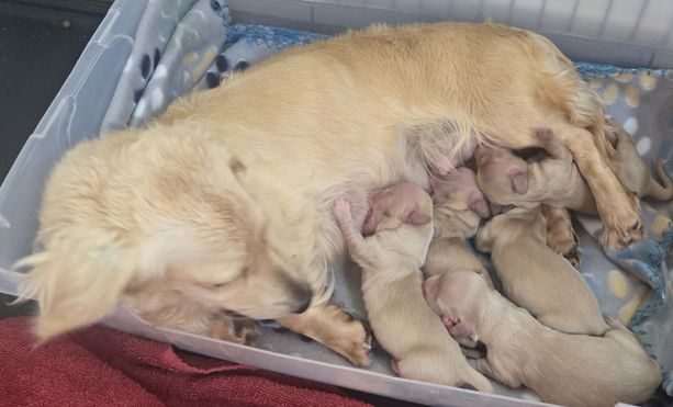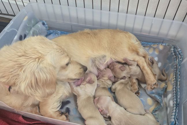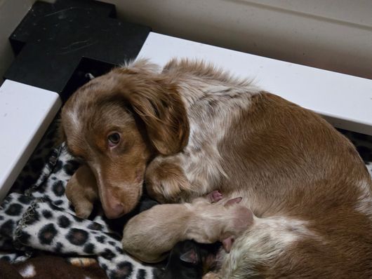 Miss Georgia is having her puppies. Count now is 8!🥰 Mama is doing great! Updates to come!