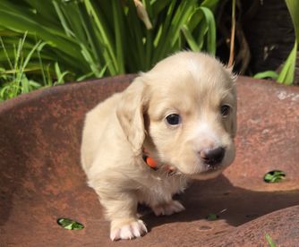 Our Dachshund puppies are cream. Colors will vary depending on the parent dogs.