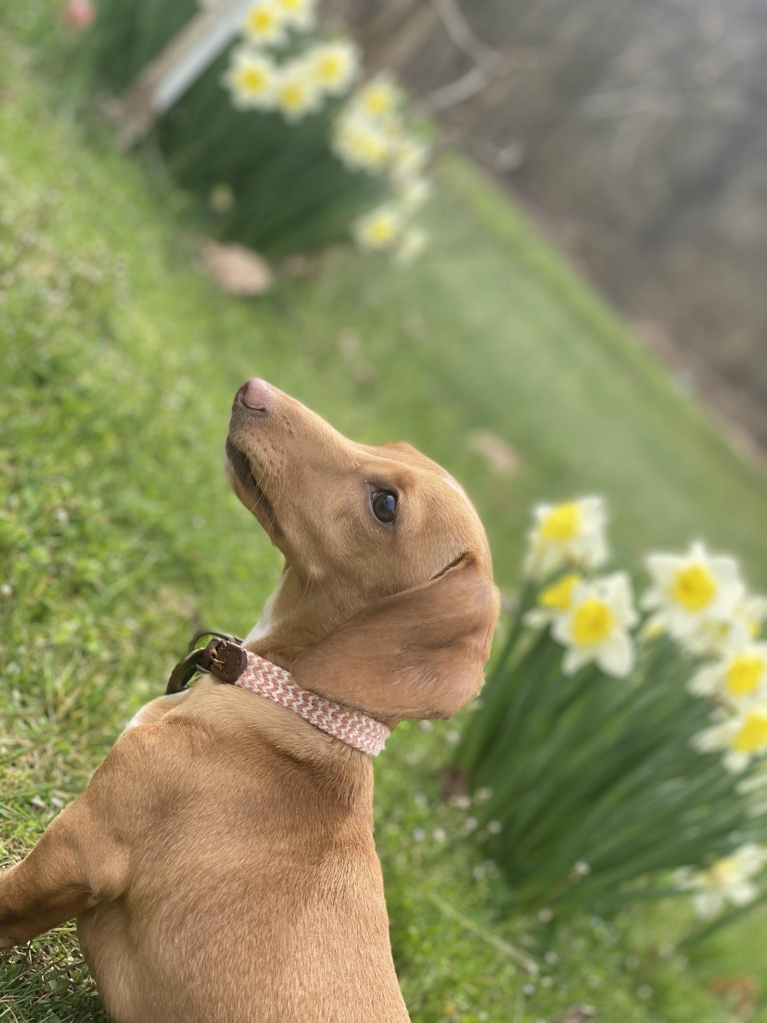 Willow is a female Dachshund. Carefully selected as a great representative of her breed, Kayley decided to make her part of their program. Kayley has passed Good Dog’s screening process, which involved a review of their breeding practices, environment, and the mental and physical health of their dogs.