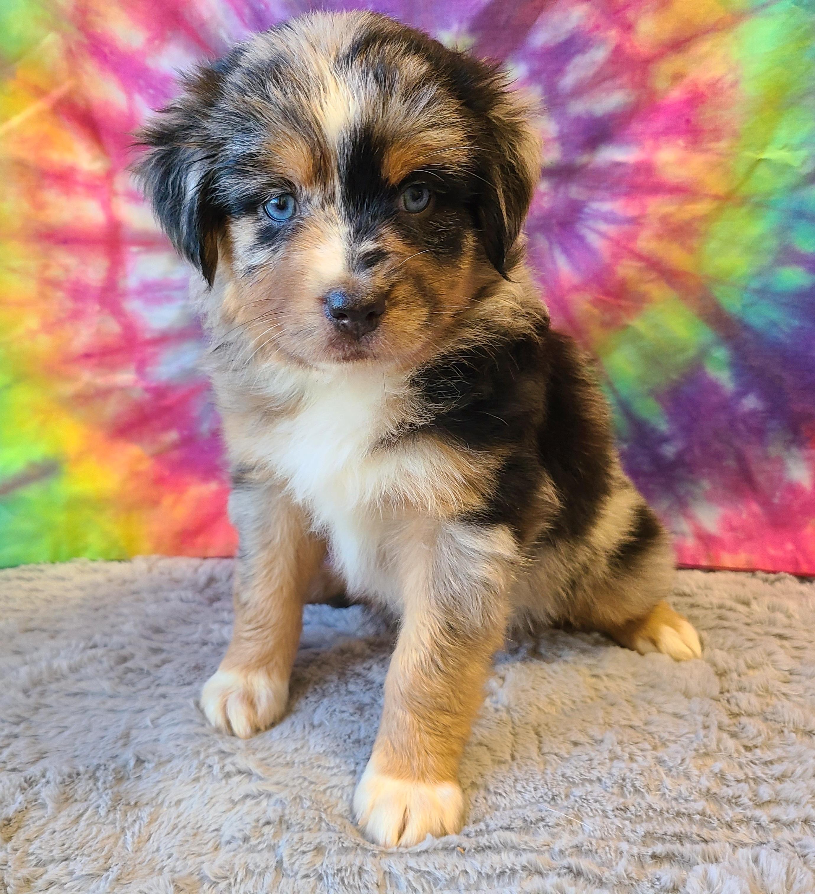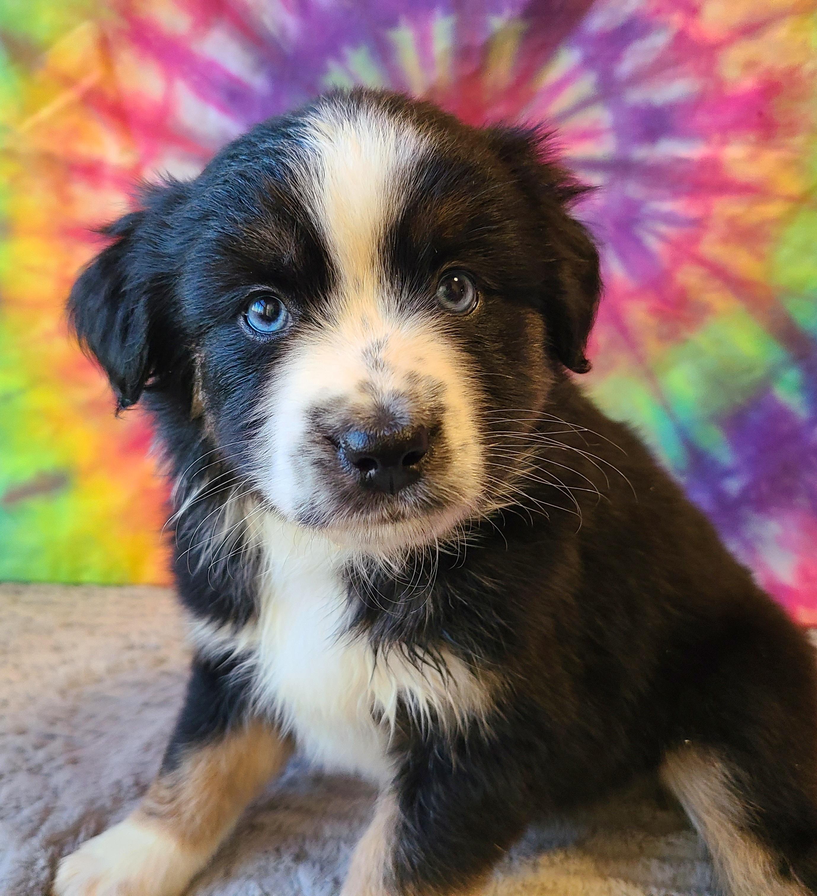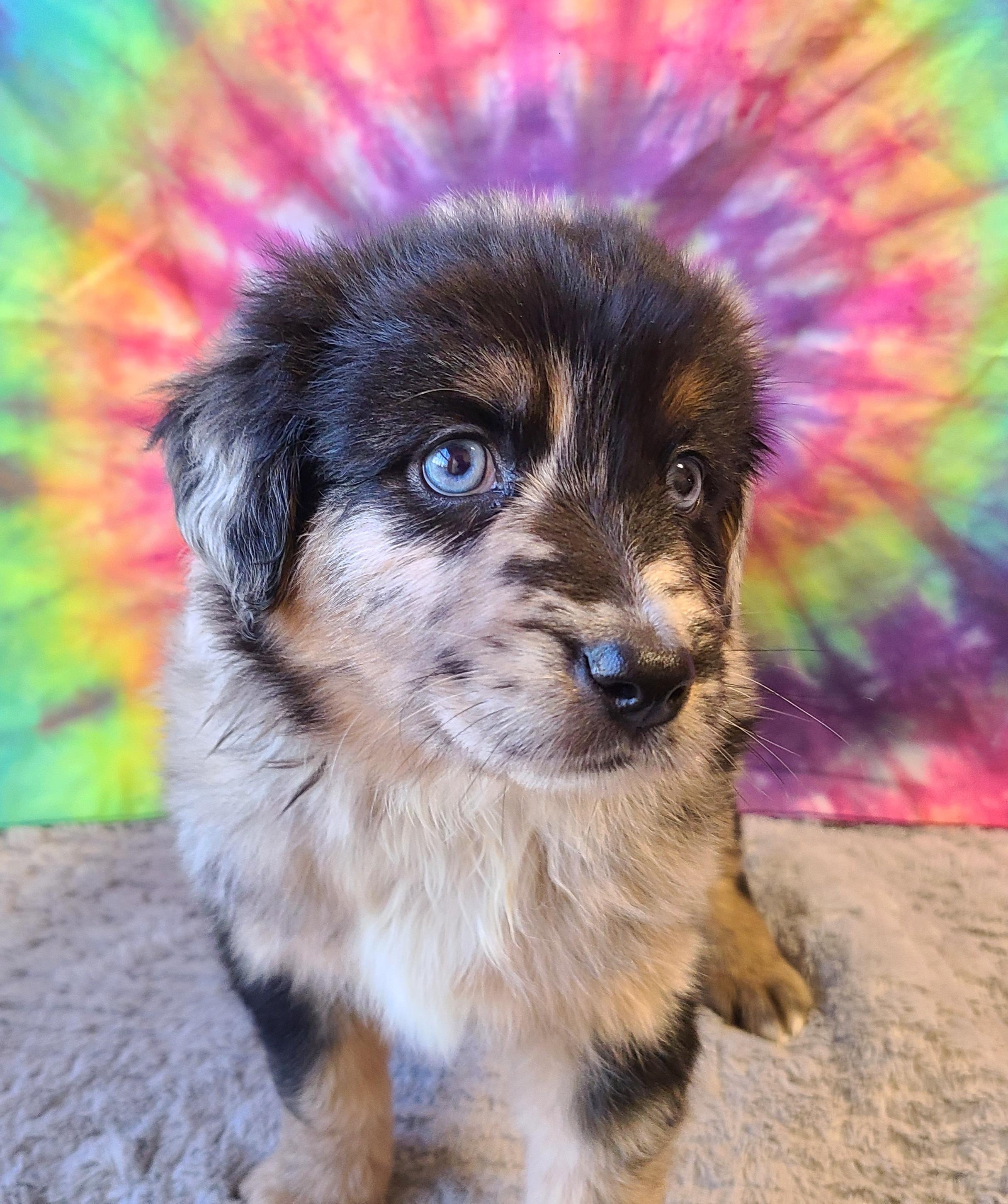Our Australian Shepherd puppies include red merle, blue merle, black tri-color, and red tri-color. Miniature Australian Shepherd puppies include blue merle, black tri, red tri, and red merle. Toy Australian Shepherd puppies include black tri, blue merle, red merle, and red tri. Colors will vary depending on the parent dogs.