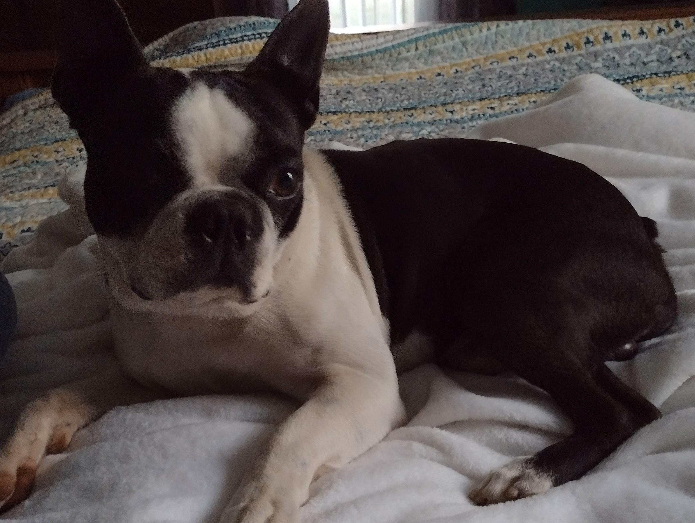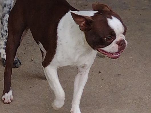 Coco is a female Boston Terrier. Carefully selected as a great representative of her breed, Jessie decided to make her part of their program. Jessie has passed Good Dog’s screening process, which involved a review of their breeding practices, environment, and the mental and physical health of their dogs.