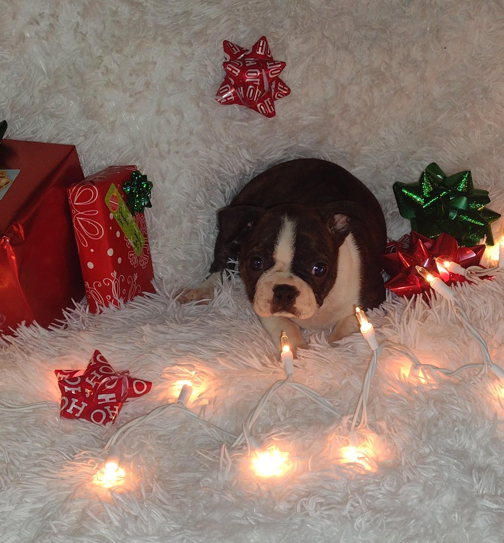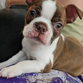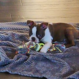 Our family loved working with Jessie! Her communication was very thorough and she helped us with any questions that we had. This is the first time for us having our own pet together and she made it easy to make this transition. There were even ways that she went out of her way to make the drop off easier for us, which helped a lot. Our Boston Terrier who we named Tucker has been a great puppy and very easy to train. I would recommend anyone looking for a Boston to go through Jessie. It’s definitely worth it. Thank you so much.