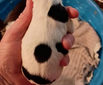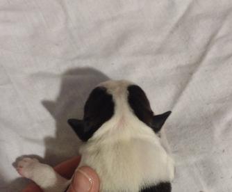 Dad is an amazing and loving dog. He is on the smaller side he weights 15 lbs. He is a classic black and white. His favorite past time is chasing the others around the yard or cuddling up on the couch. He is spunky but also loves to just chill, making him an all around companion for any household. We have one of his daughters and she has his exactly crazy antics, out going and loving personality.