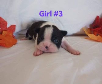 Jessie (Bluegrass Bostons) are fantastic to work with. Quick to respond and very very helpful. Easy to schedule pick up. AND Scrappi Ann was pretty much potty trained we got her home. I mentioned this to Jessie and she responds with we work with them early on potty training. HOW FANTASTIC! They are wonderful to work with, highly recommended! We will be getting another from Bluegrass Bostons.