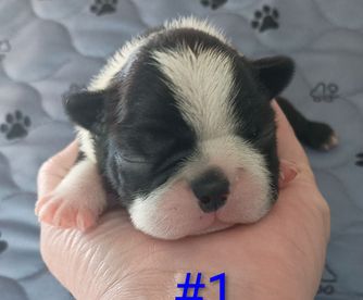 Our puppies include seal and white, black brindle and white, and black and white. Colors will vary depending on the parent dogs.