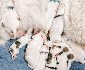 We are taking reservations to reserve a puppy in the order of deposit. Then at 6 weeks we will have puppy selection. At this time we can help guide you to the puppy that best fit the qualities, temperament, and role you plan for them to have whether it is a livestock guardian or beloved family pet. Please reach out if you have any questions or would like to reserve a puppy. We love to chat about our beloved great pyrenees! It is an honor to walk alongside Valor as she raises these puppies and find the pyrfect home for them.