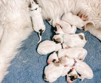 Our mission in breeding AKC Great Pyrenees is to only better the breed and raise the most well rounded puppies using the puppy culture method. Our dam and sire are both livestock guardians, but also are beloved family pets that come in occasionally for visits which they adore. We were diligent in choosing our dam and sire to meet the conformation and temperament we strive to pass on.