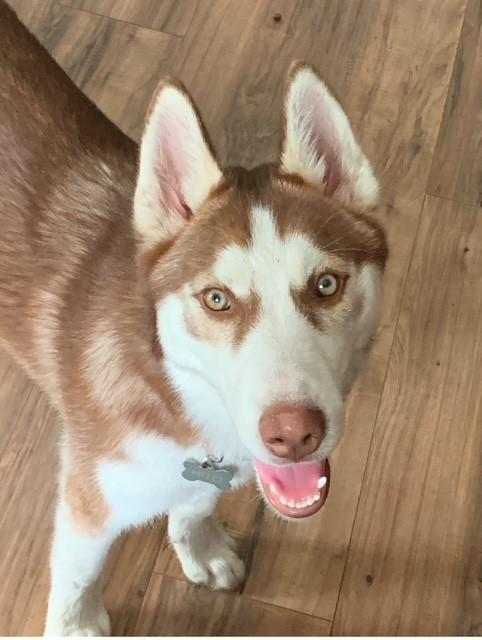 Hito is a very curious dog, loves people, very social, a little bit of a talker, and is a big goofball who makes us laugh! Hito loves to take walks and is the lead dog who is good with following commands and forging the other pack members forward. Hito is our pack member who is intuitive to when people and animals are hurting or sad, and will respond in affectionate ways. Hito is a reddish, brown & white AKC registered Siberian Husky. His fur is coarser and short. Hito has Parti-colored eyes: blue in the middle and very light brown on the outside, which makes his eyes look green. Hito is of average weight and build for the breed. DOB 11/04/2022.