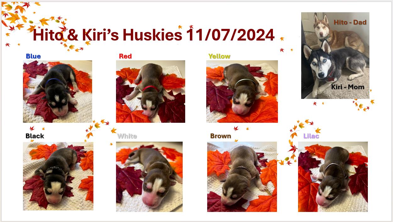 Hito and Kiri have the BEST husky personalities and they are both BEAUTIFUL. We decided we want to share a bit of them with others! After a wonderful first litter experience, we decided to add one more couple, Quinner and Jesse.