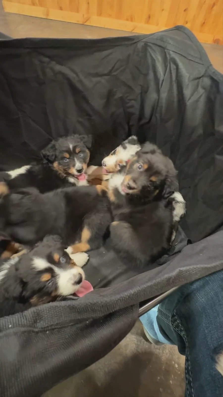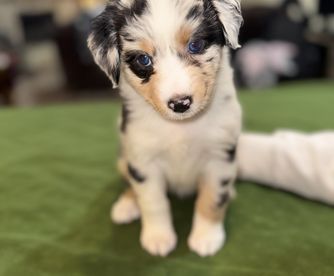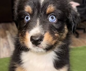 Our puppies include blue merle, black tri, and red merle. Colors will vary depending on the parent dogs.