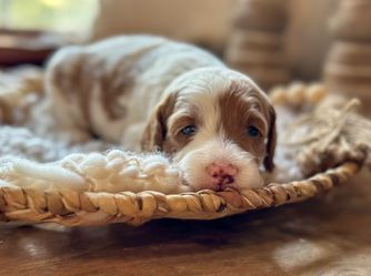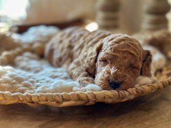 Piper is a female Goldendoodle. Carefully selected as a great representative of her breed, Samantha decided to make her part of their program. Samantha has passed Good Dog’s screening process, which involved a review of their breeding practices, environment, and the mental and physical health of their dogs.