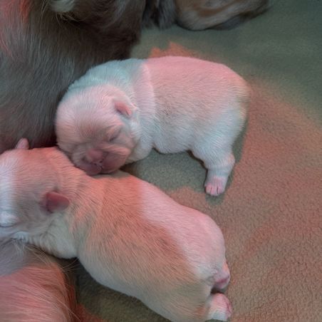 Our puppies include cream and blue. Colors will vary depending on the parent dogs.