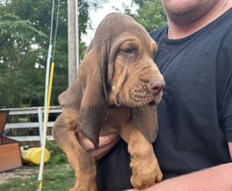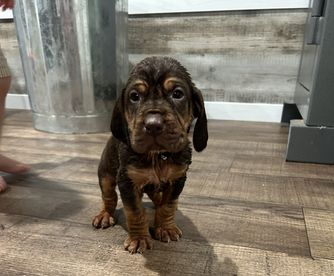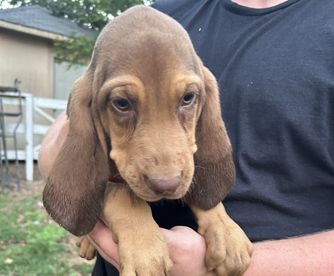 Bloodhound puppies include liver and tan and black and tan. Colors will vary depending on the parent dogs.