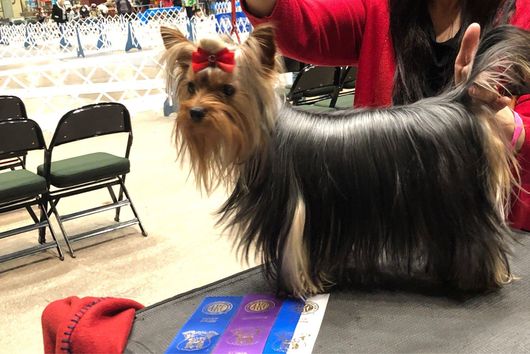 Karen Hobbs is the best breeder I have ever had the pleasure of working with in this business. I had difficulty finding an available Yorkshire Terrier puppy where I live in Hawai’i due to unavailable litters and waiting lists, etc. Thus, I looked on Gooddog.com, to find one on the U.S. mainland. It was here that I encountered Karen Hobbs. I am extremely grateful to Good Dog for connecting breeders and owners around the world. But there was an arduous process with regard to importing a pup into Hawai’i since it is a “Rabies Free Zone.” Karen was the only one who agreed to work with me and do so with patience, grace, and generosity. She spent long hours ensuring my yorkie met all the qualifications for entry. This entailed two rabies vaccinations (30 days apart), paperwork, vet visits, the official rabies FAVN antibody test (23 days post 2 rabies vaccinations which yielded a passing result), a final health check, and a flea and tick treatment. While I kept up on the requirements for entry, Karen ensured my pup was receiving all of the necessary shots and tests. She worked closely with Anamosa Veterinary Clinic, a wonderful establishment that ensured the costs of this preparation were quite generous. Karen set the stage for true teamwork to occur between myself, her, and Anamosa Veterinary Clinic! Meanwhile, when my yorkie and I finally arrived in Hawai’i, the folks at Animal Inspection were impressed by Karen’s beautifully organized folder with all of my yorkie’s records (i.e. vaccinations, FAVN results, etc.), all essential for entry into Hawai’i. Since my yorkie could not enter until all Hawai’i requirements were satisfied, I had to wait to meet my yorkie pup until 5.5 months. Karen graciously boarded her, updated me with facetime and pictures, and loved my beautiful yorkie until I could retrieve her in Iowa. Her puppies are the real deal, PUREBRED, healthy and beautiful. Further, as evidenced by the passing FAVN, her pups have impeccable immunity, especially since my yorkie passed with more than double the antibody result. Since this was such a long process, I was granted the opportunity to know Karen in a profound way. I learned all the ways in which she cares for her animals (those that she breeds, those that she professionally enters into competition, as well as those she cares for as pets). I learned how she genuinely pours her heart into this beautiful breed, ensuring a well-bred, well-tempered, healthy Yorkshire Terrier line. Do not hesitate to buy from her. You’ll be more than satisfied with your Yorkie. The naysayers said that “since I waited 5.5. months, my yorkie wouldn’t bond with me.” This couldn’t be further from the truth. My little yorkie immediately began loving me the moment she ran into my arms. Now she’s my little shadow. She is so beautiful, so loving and so calm. You will also be more than satisfied with Karen as your breeder, which is very important when you make such an investment. She spent so much time sharing her knowledge of this breed, sharing links to puppy products, as well as answering all my questions with patience and grace. Whereas many breeders may take the money and run, Karen is still answering my questions even after I paid for and picked up my beautiful girl. She even brought the parents to the airport with my puppy so I could personally meet them. I was so impressed by them since both parents were from championship bloodlines. Even more impressive, I learned that my yorkie’s father is an AKC Grand Champion. Karen even groomed the mother for me (right outside the airport entrance) so that I would know how to do it on my own! Karen embodies all of the qualities of an excellent breeder, who not only cares for her animals, but for the people who buy them. Karen went the distance for me and I am truly humbled by her actions. And I know she has gone the distance for countless others to ensure her Yorkshire Terriers would go to loving homes. Warmest Aloha Always to Karen Hobbs! Etta Ann