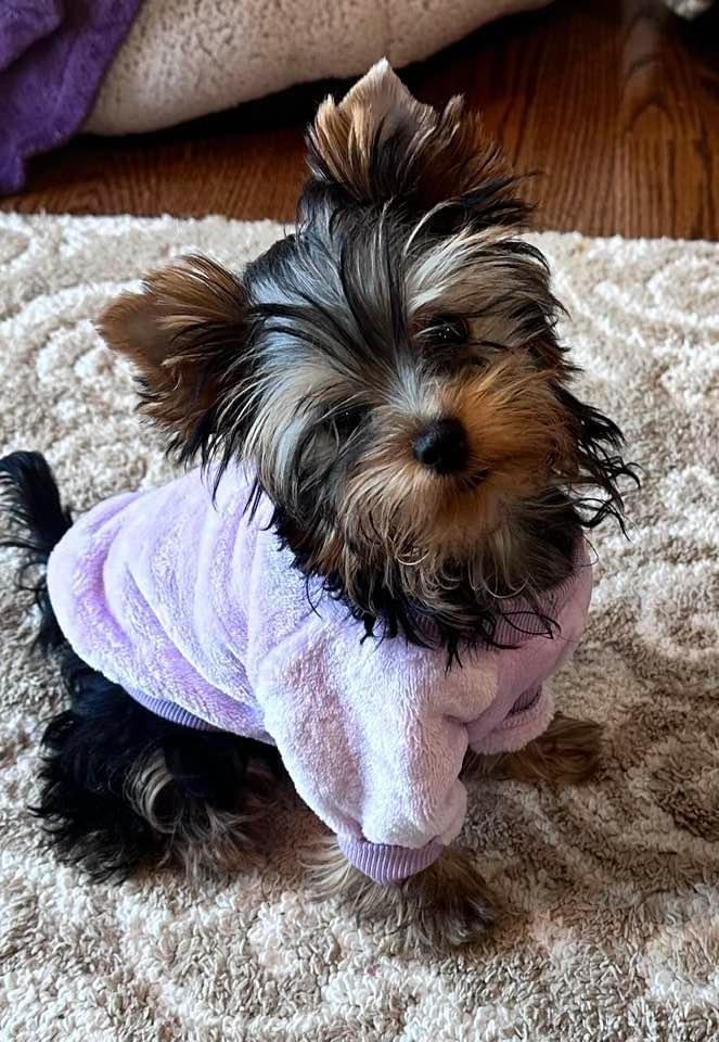 Viola is a female Yorkshire Terrier. Carefully selected as a great representative of her breed, Karen decided to make her part of their program. Karen has passed Good Dog’s screening process, which involved a review of their breeding practices, environment, and the mental and physical health of their dogs.