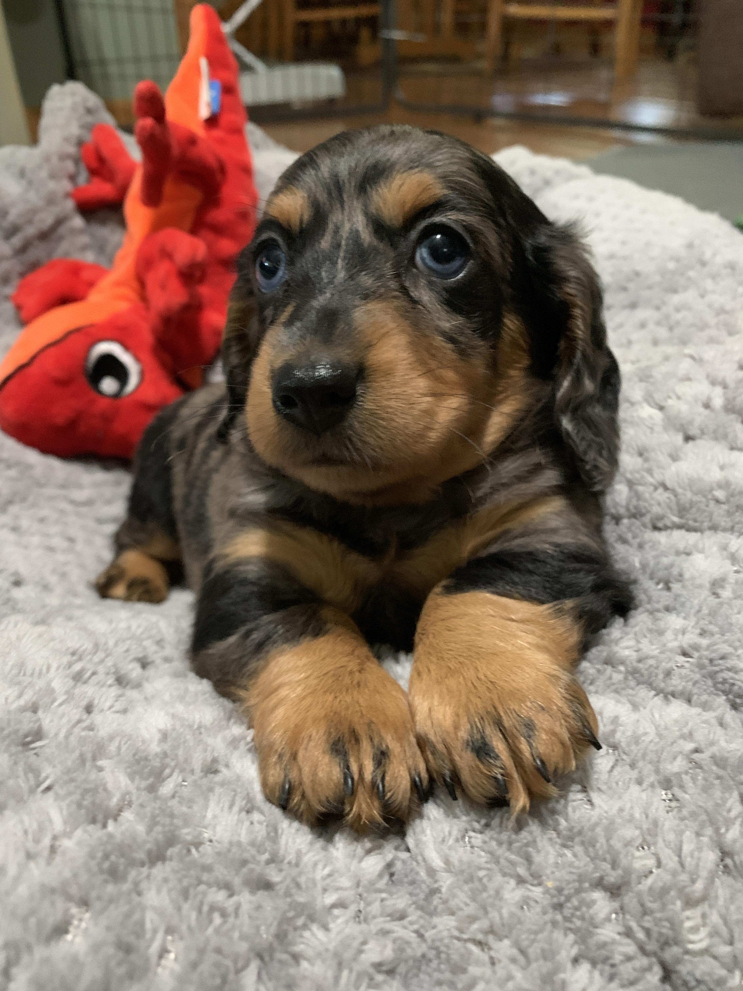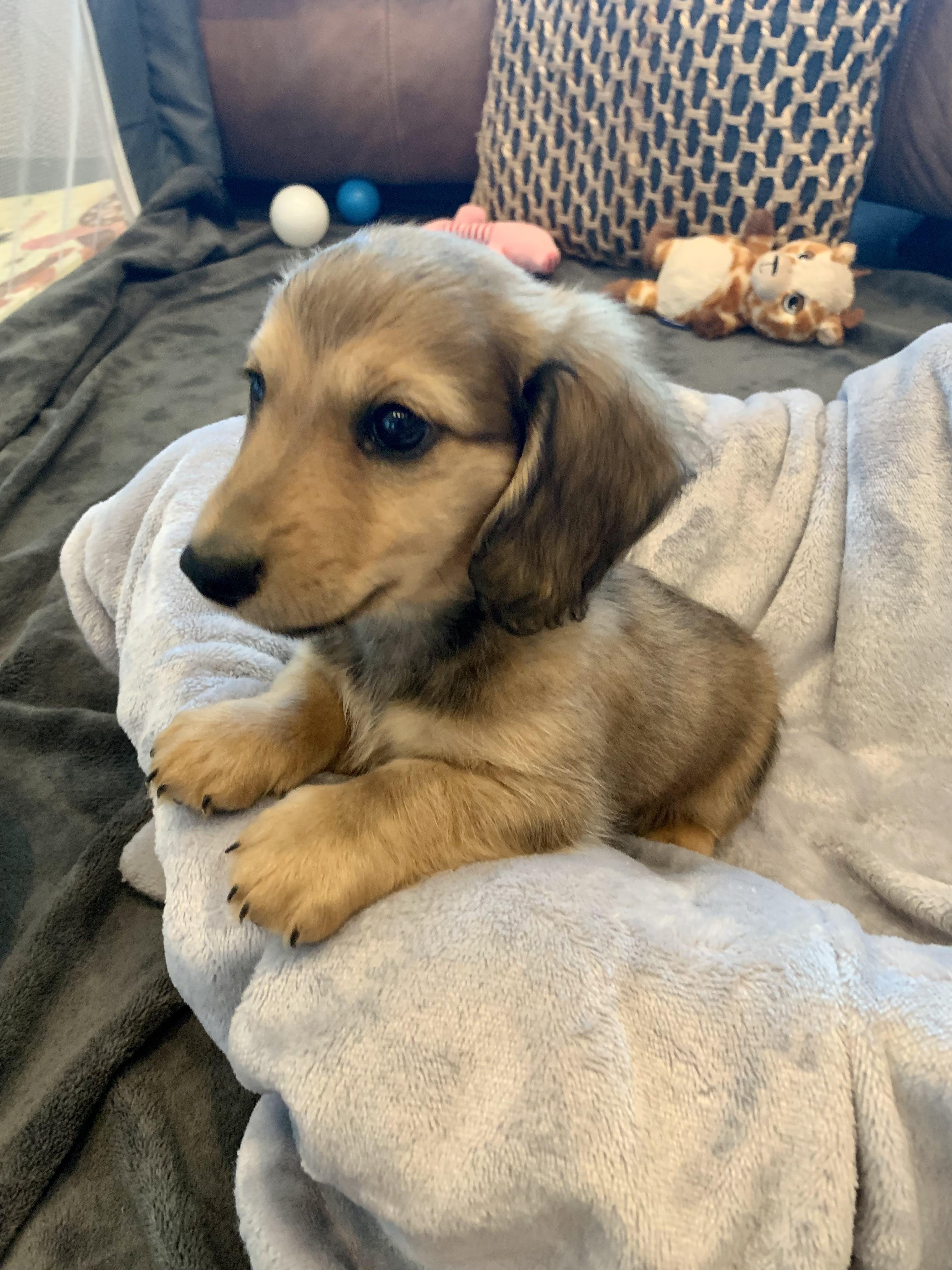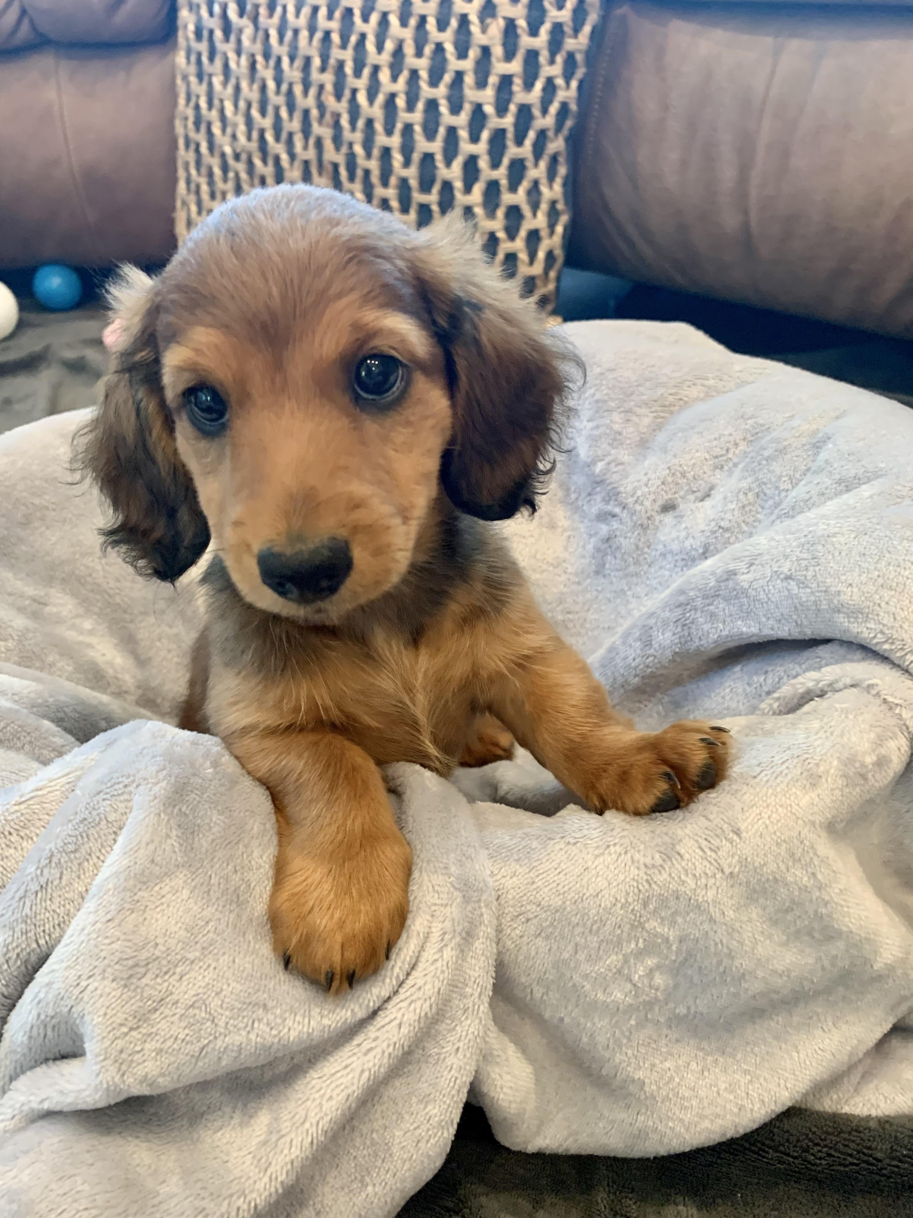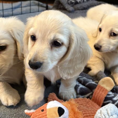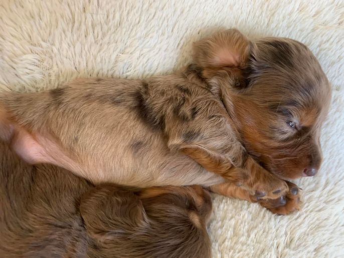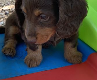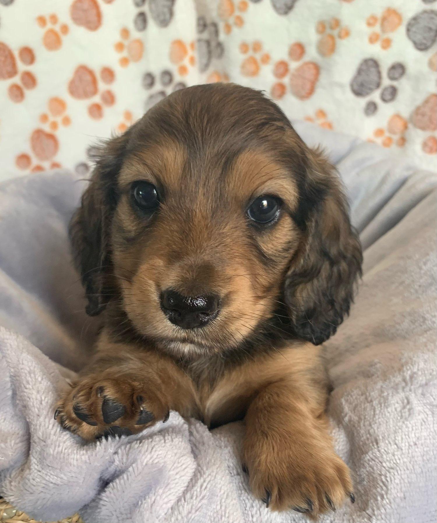 I'm Angela H., the breeder behind Hocomo Hollow Doxies located in Caulfield, MO. We cherish each of our dogs and puppies, and we do everything we can to make sure that they get the best lives possible. That includes everything from choosing healthy parents with good temperaments, to proper socialization and daily care, to placing them in loving homes with wonderful families.