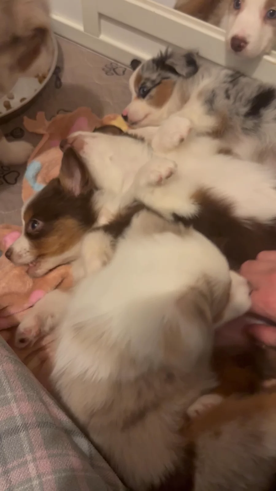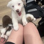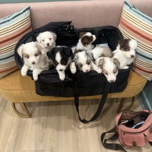 Our Toy Australian Shepherd puppies include black & white, red, black tri, blue merle, red merle, and red tri. Border Collie puppies include tri-color, lilac merle, blue merle, red merle, lilac, sable, sable merle, saddleback sable, white and red, white and red merle, and slate. Colors will vary depending on the parent dogs.