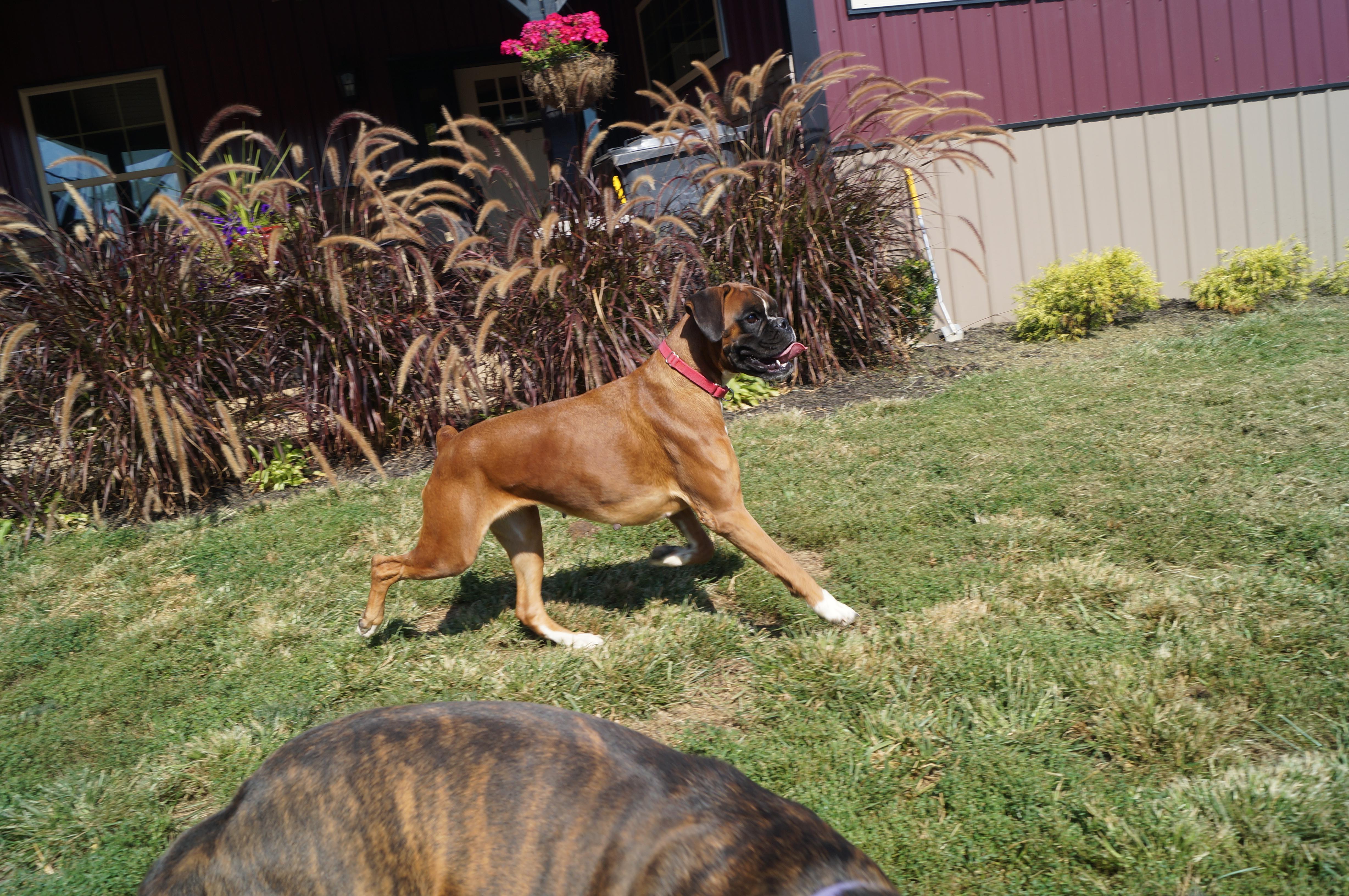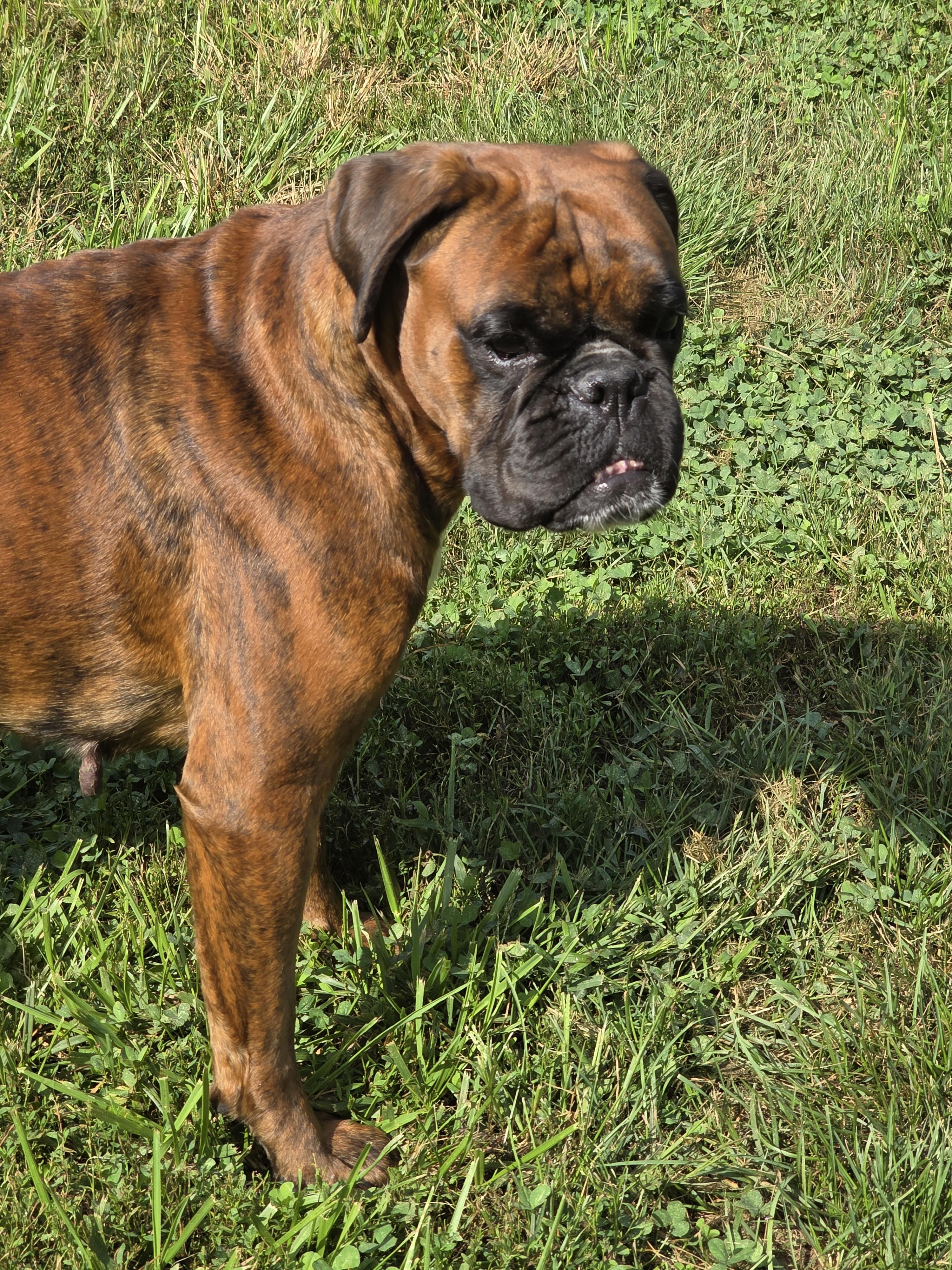 Karma is a female Boxer. Carefully selected as a great representative of her breed, Chris decided to make her part of their program. Chris has passed Good Dog’s screening process, which involved a review of their breeding practices, environment, and the mental and physical health of their dogs.