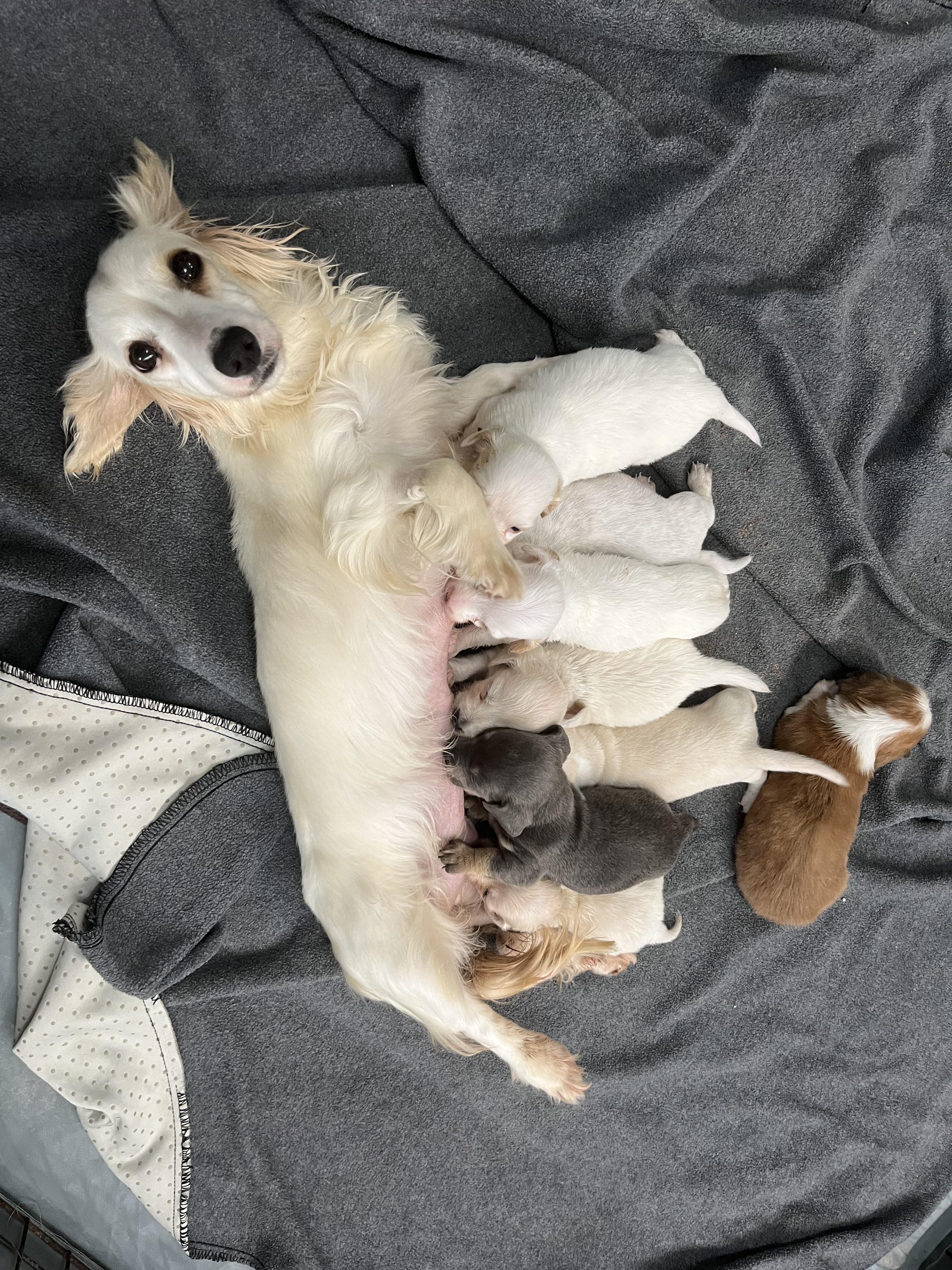 At the time we only had two dachshunds, and we decided to have a litter. Was just planning on the one. But going through the pregnancy with my girl and raising the puppies and finding them homes and the absolute joy it brought to the people that got those four first puppies, I was hooked.