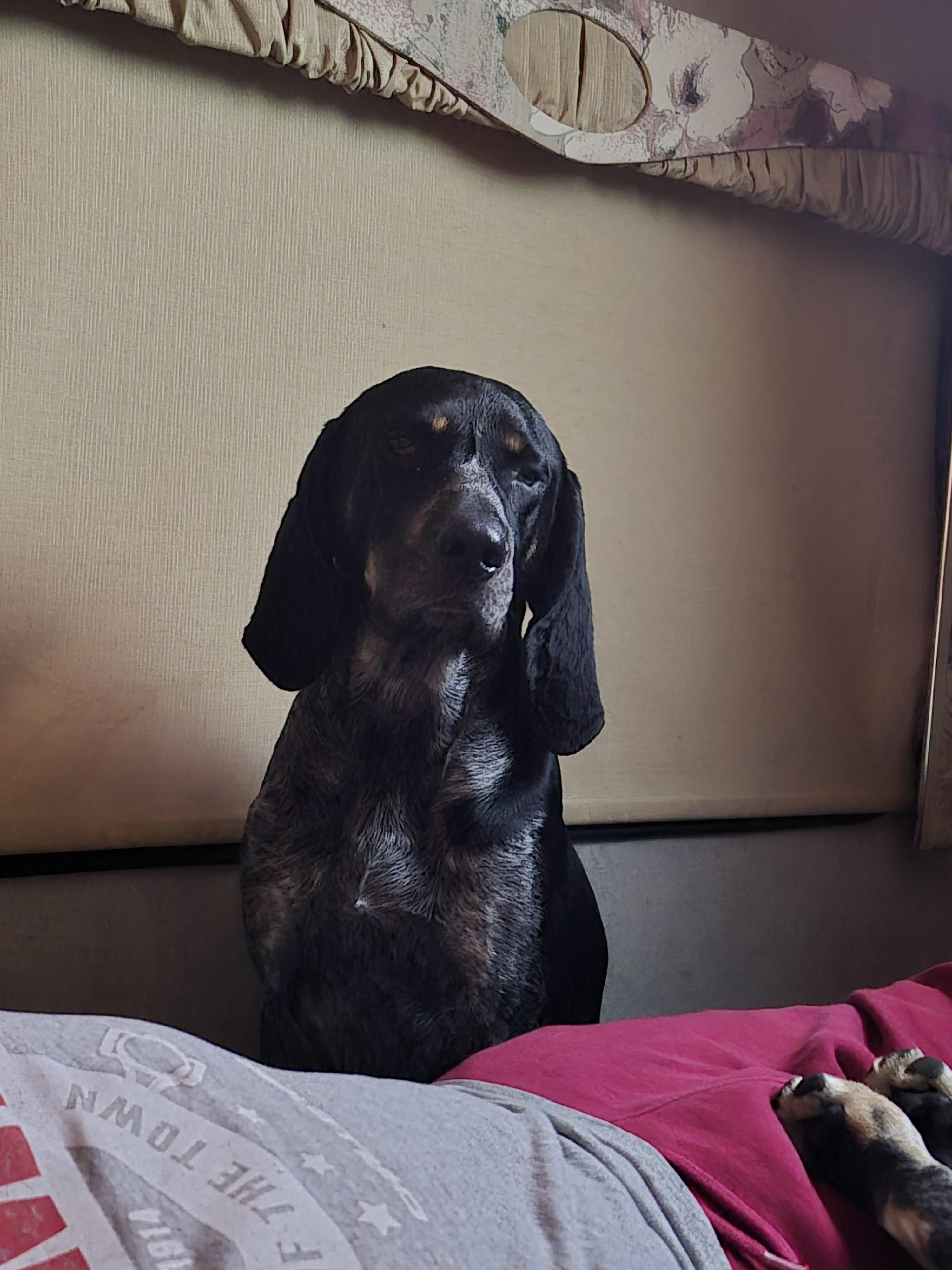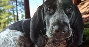 Squirrel is from the hills of Tennessee!! His granddaddy is the Tennessee Titans mascot. He is super intelligent, (there isn't a door he hasn't figured out how to open) He has great natural genetics to hunt anything and everything. He's treed coons, cats, squirrels, chipmunks and wont let a bird land in the yard if I'm present. He's also proven to be a excellent guard dog, especially to kids. He also has the sweetest soft side, he loves to give hugs. Also his focus when tracking is unbreakable. He also has the voice that carries for miles! I've had neighbors point that out and I live in the country.