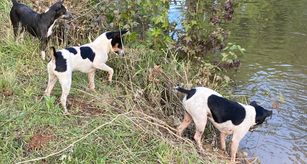 Daisy was our first Rat terrier and is the reason we fell in love with this breed. She’s up for exploring and any hunt but would happily stay in the bed with you all day. Daisy is quick to learn anything. She has a kind, friendly spirit with all people and dogs but shows no mercy when she’s on the hunt. Daisy is a joy to live with and proves herself to be a favorite of the whole family.