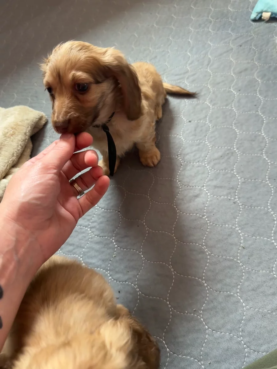 Kimberly was amazing to work with. She answered all of my questions and responded in an appropriate time. We were able to get my pup shipped from Oklahoma to California all while keeping me updated throughout the trip. I would definitely recommend getting a dog from Holder’s Doxie Farm!
