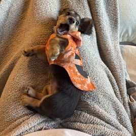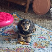 Duchess is the most sweet natured dachshund. She earned her AKC Canine Good Citizen award by 6 months old (the youngest the trainer ever had earn this)! She is a devoted mother who loves to play with the younger dogs and is content to just be near her human. She loves to be on a lap and snuggled up in bed under the covers.