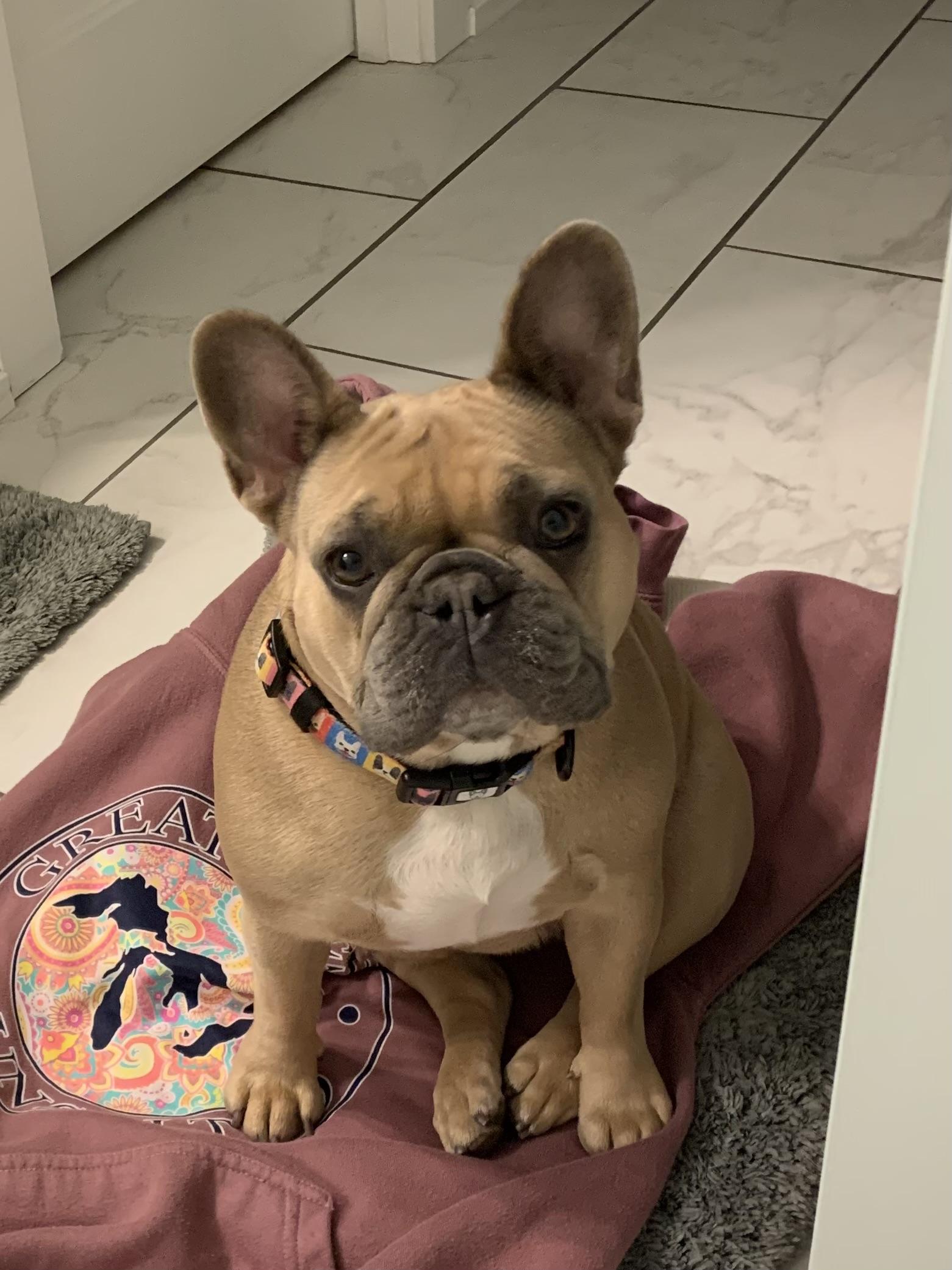 Maddie is a female French Bulldog. Carefully selected as a great representative of her breed, Erika decided to make her part of their program. Erika has passed Good Dog’s screening process, which involved a review of their breeding practices, environment, and the mental and physical health of their dogs.