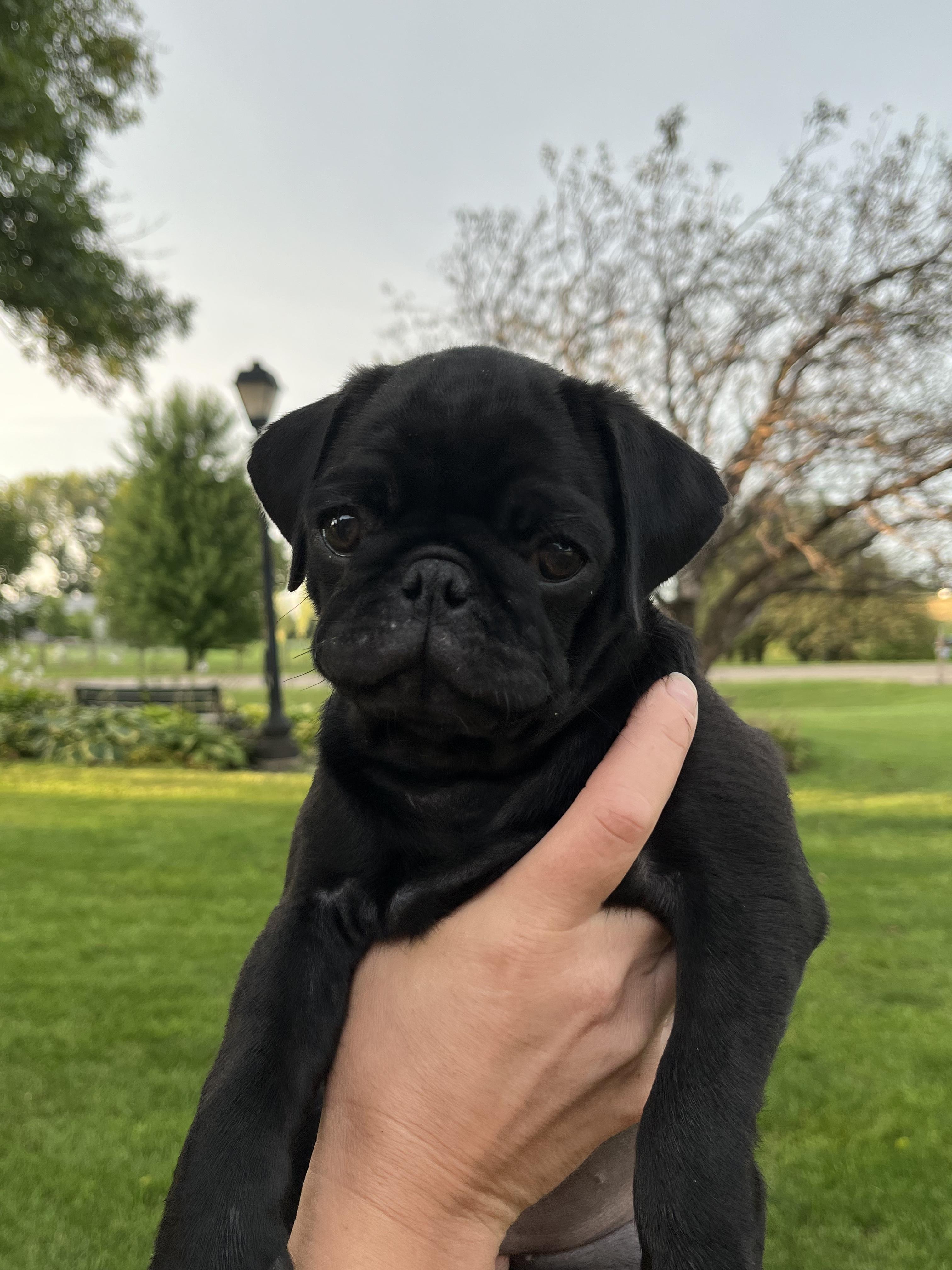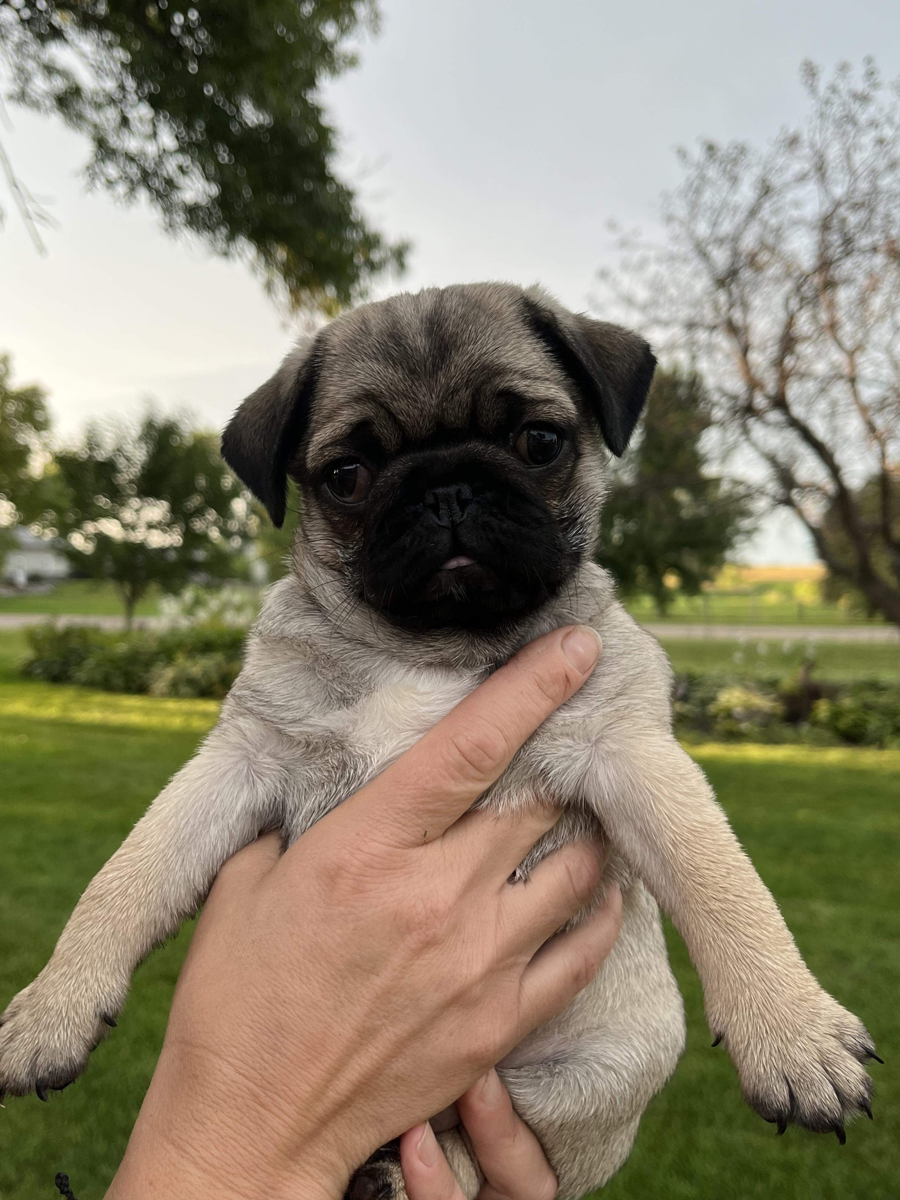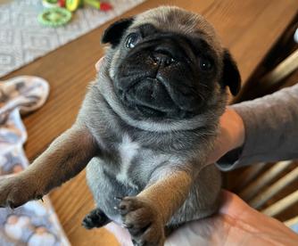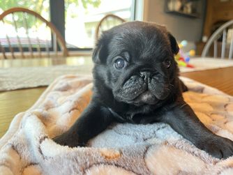 I'm Katy H., the breeder behind Holland Pugs located in Olivia, MN. AKC pug pups. Family raised in our home. The pups will be vet checked, microchipped, vaccinated and dewormed before going to their new homes.