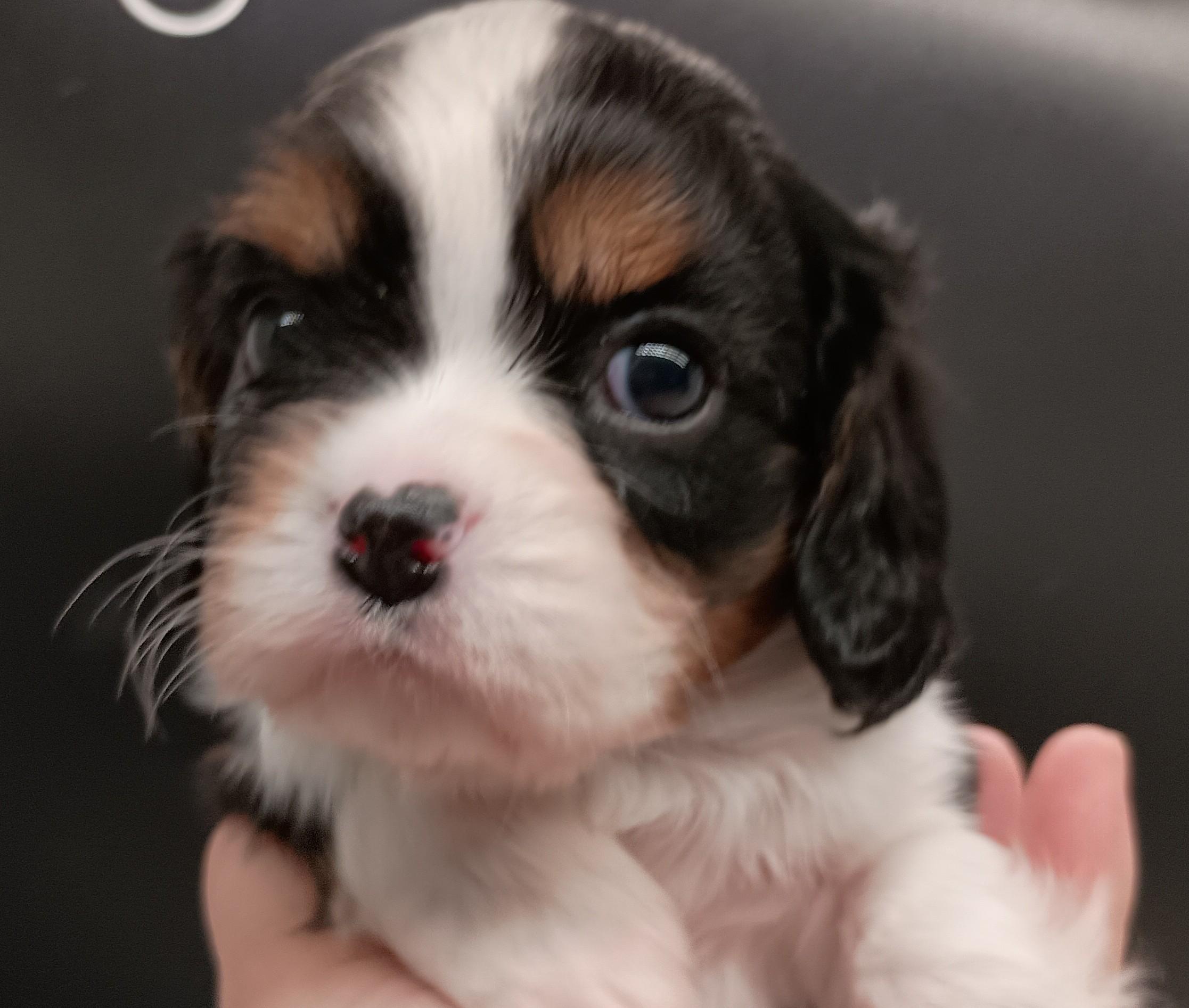 Our puppies include blenheim, black and tan, and tri-color. Colors will vary depending on the parent dogs.